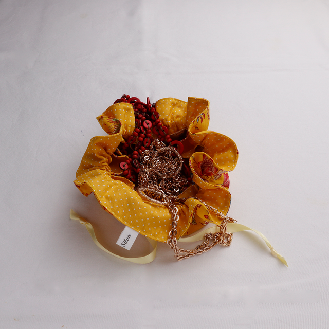 Charmoso e prático, o saco porta-jóias em tecido é ideal para guardar e transportar pequenos acessórios como anéis, brincos, pulseiras ou colares. Com bolsos internos e um fecho tipo franzido, mantém as peças organizadas e protegidas, seja em casa ou durante viagens.